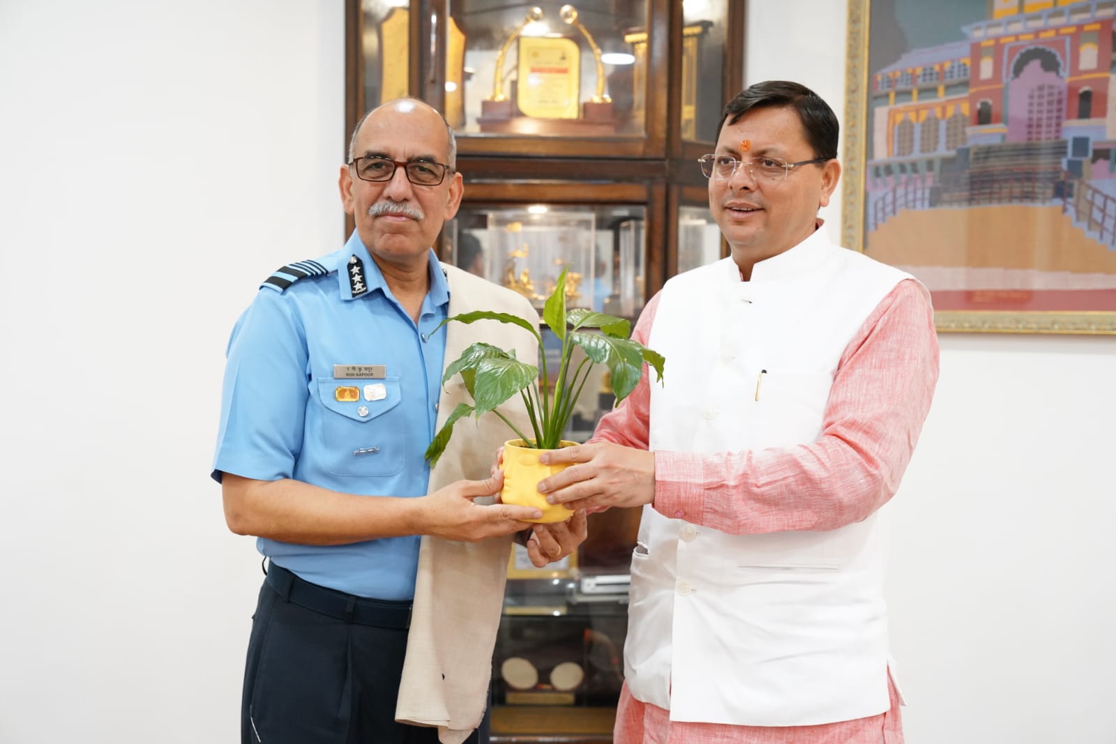 मुख्यमंत्री धामी से शुक्रवार को मुख्यमंत्री आवास में एयर मार्शल, रवि गोपाल कृष्णा कपूर, एयर ऑफिसर कमांडिंग -इन -चीफ, मध्य वायु कमान ने की शिष्टाचार भेंट।
