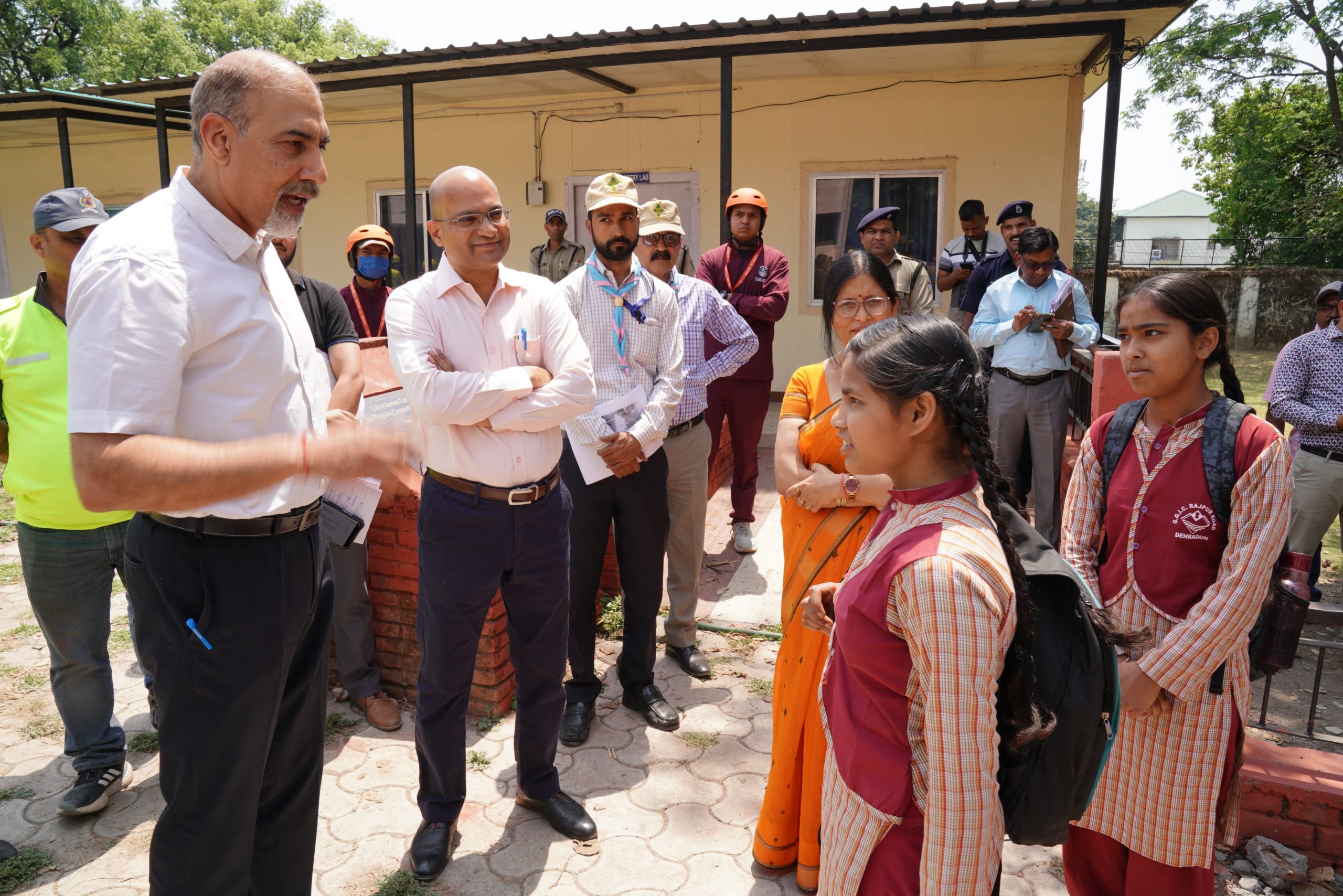 इस दौरान सचिव आपदा प्रबंधन डॉ. रंजीत कुमार सिन्हा तथा एनडीएमए के वरिष्ठ सलाहकार मेजर जनरल सुधीर बहल ने राजपुर रोड स्थित जीजीआईसी में भूकंप की मॉक ड्रिल का निरीक्षण कर स्कूल प्रबंधन और राहत और बचाव टीमों को जरूरी निर्देश दिए। मेजर जनरल सुधीर बहल ने स्कूल की प्रधानाचार्या से भूकंप के समय बच्चों की सुरक्षित निकासी के प्लान को लेकर जानकारी ली। उन्होंने स्कूल में प्रत्येक तीन माह में इस तरह की मॉक ड्रिल अपने स्तर पर कराने को कहा। उन्होंने बच्चों को, खासतौर पर एनसीसी कैडेट्स को फर्स्ट एड की ट्रेनिंग देने को कहा। इस दौरान उन्होंने छात्राओं के साथ संवाद भी किया। मेजर जनरल सुधीर बहल ने स्कूली छात्राओं को आपदा प्रबंधन की दृष्टि से अलग-अलग जिम्मेदारियों देने को कहा ताकि आपदा के समय स्वयं मदद को आगे आ सकें। इसके बाद उन्होंने पुलिस लाइन स्थित स्टेजिंग सेंटर में विभिन्न विभागों के स्तर पर की जा रही तैयारियों का जायजा लिया और जरूरी निर्देश दिए। टीम ने दून अस्पताल में भी आपात स्थिति से निपटने की व्यवस्थाओं का जायजा लिया। उन्होंने अस्पताल प्रबंधन को एक ठोस डिजास्टर मैनेजमेंट प्लान बनाने के निर्देश दिए।
