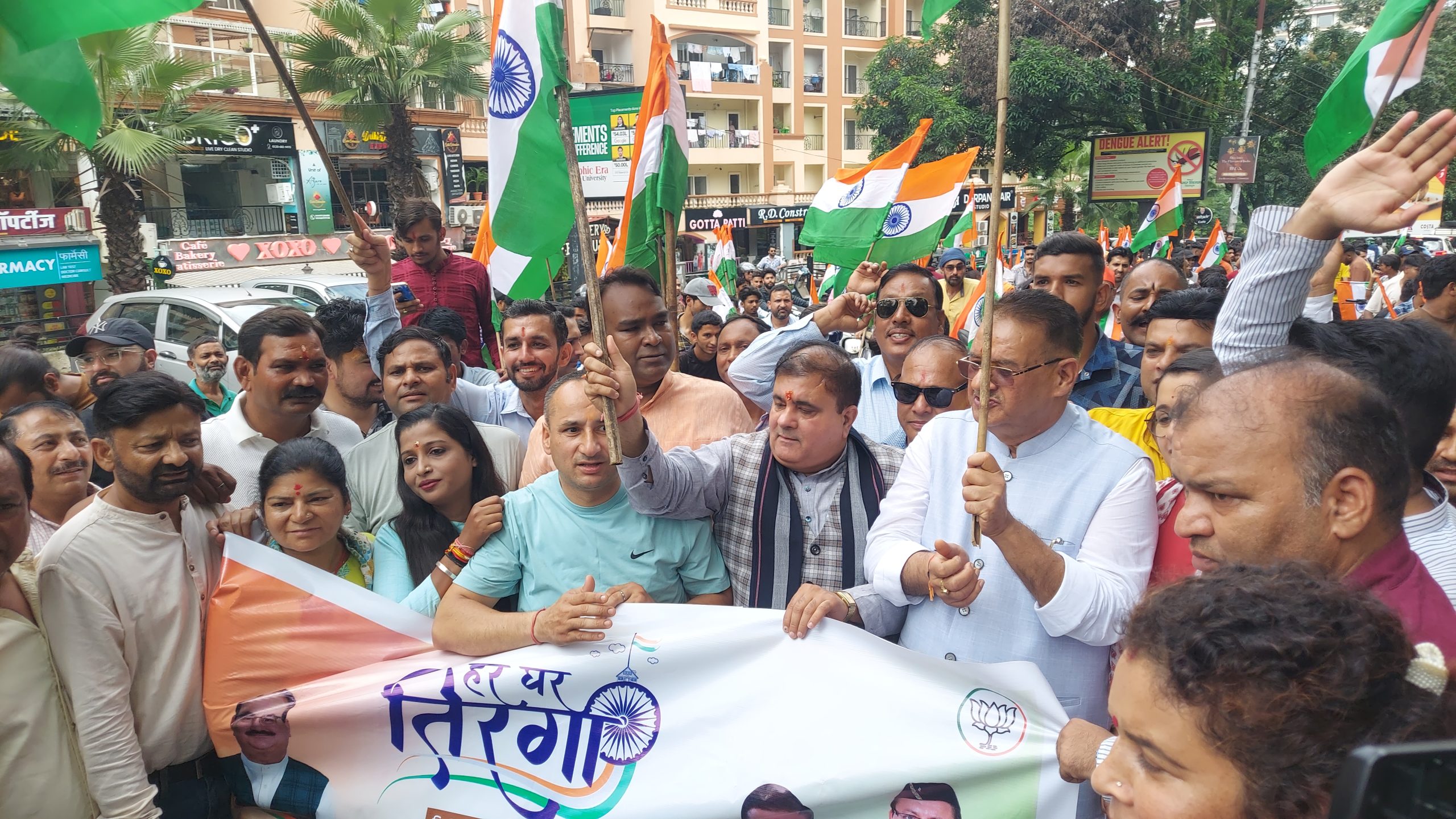 मसूरी विधानसभा में आयोजित हर घर तिरंगा कार्यक्रम के तहत तिरंगा यात्रा में सम्मिलित हुए भाजपा प्रदेश अध्यक्ष एवं कैबिनेट मन्त्री, कहा तिरंगा हमारे आन बान और सम्मान का प्रतीक, भारत को एक सूत्र में बांधने का काम करता है।