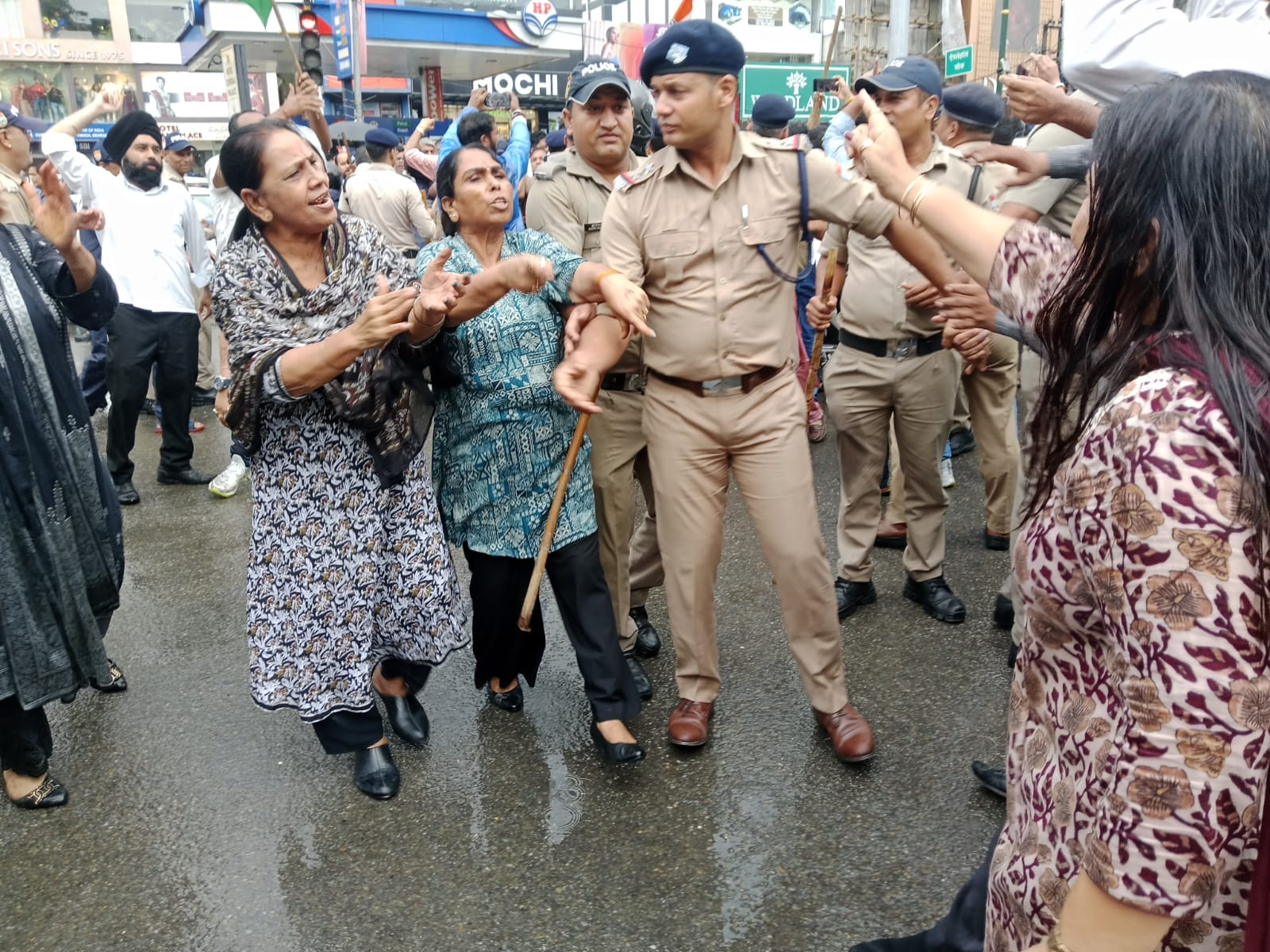 देहरादून में भाजपा कार्यकर्ताओं ने महानगर कार्यालय से करीब दो किलोमीटर दूर कांग्रेस प्रदेश कार्यालय की ओर कूच किया। हालांकि पुलिस ने एश्ले हॉल पर बैरिकेडिंग लगाकर उन्हें रोकने की कोशिश की, लेकिन इसके बावजूद कुछ भाजपा कार्यकर्ता कांग्रेस कार्यालय तक पहुंच गए। इस दौरान कांग्रेस कार्यकर्ता भी गेट पर मौजूद थे और दोनों पक्षों के बीच जमकर नारेबाजी हुई। कार्यकर्ताओ के आमने-सामने आते ही हंगामे की स्थिति बन गई, जिसे संभालने में पुलिस प्रशासन के पसीने छूट गए। झड़प और नोकझोंक के चलते एश्ले हॉल चौक पर ट्रैफिक भी लंबे समय तक प्रभावित रहा।